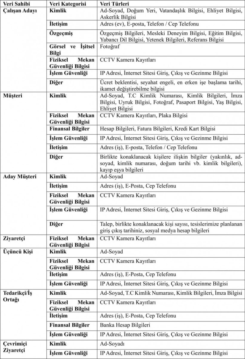 KİŞİSEL VERİLERİN KATEGORİZE EDİLMESİ