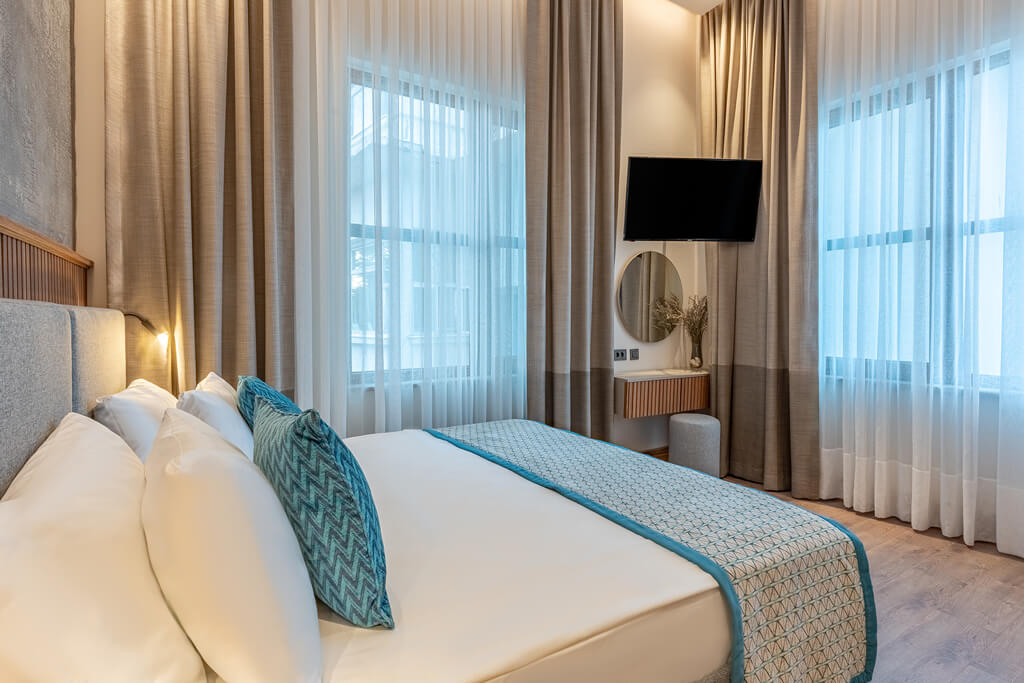 Perge Pine Green suite odaları, Junior suite odaları, çift kişilik standart konforlu odaları ve Penthouse suite, konuklarımıza rahatlık ve huzur sunarken, misafir memnuniyetini ön planda tutan çalışan kadromuz ve merkezi konumumuzla kaliteli bir konaklama deneyimi sunuyoruz.